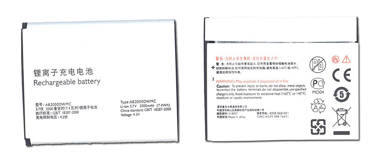 Аккумуляторная батарея AB2000DWMC для Philips T939/W8578/W930